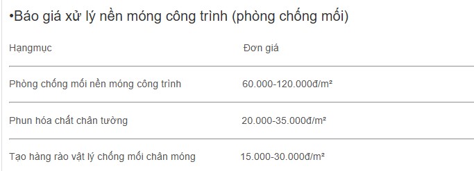 •Báo giá xử lý nền móng công trình (phòng chống mối)