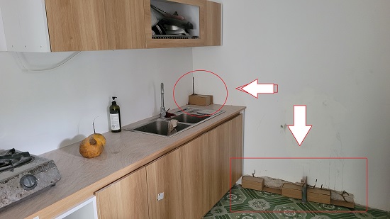 Lưu ý: Mối thường đi theo các đường ống nước âm tường để chui vào bên trong tủ bếp,có thể là ống nước cấp hoặc ống nước thoát.